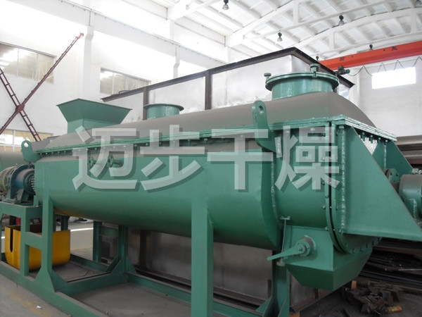 浆叶干燥机已成功地用于食品、化工、石化、染料、工业污泥等领域。设备传热、冷却、搅拌的特性使之可以完成以下单元操作:燃烧(低温)、冷却、干燥(溶剂回收)加热(融化)、反应和灭菌。搅拌浆叶同时又是传热面,使单位有效容积内传热面积增大,缩短了处理时间。楔型浆叶传热面又具有自清洁功能。压缩--膨胀搅拌功能使物料混和均匀。物料沿轴向成"活塞流"运动,在轴向区间内,物料的温度、湿度、混合度梯度很小。用导热油做热介质浆叶干燥机可完成低温燃烧工作。如:二水硫酸钙(Ca2SO4·2H2O) 燃烧转化为半水硫酸钙(Ca2SO4·1/22H2O)。碳酸氢钠(NaHCO3)经煅烧转化为纯碱(Na2HCO3)等。通入冷却介质,如水、冷却盐水等即可用来冷却。如:使用于纯碱行业的浆叶式凉碱机,取代老式的空气冷却凉碱机,节省了能源及尾气处理设备,降低了操作费用。干燥,设备最主要的功能,不使用热空气,使溶剂回收、能源消耗、环境控制处于易处理的理想状态。对需回收溶剂、易燃易氧化热敏性物料尤为适应。已用于精细化工、石化、染料行业。轴向区间内,温度、湿度、混合度的均匀性,使得设备可用来加热或融化,或进行一些固体物料反应。在复合肥及变性淀粉行业均已成功使用。浆叶干燥机可用来对食物和面粉进行灭菌处理。单位有效容积内大的加热面积,很快就将物料加热到灭菌温度,避免了长时间加热而改变物料品质。