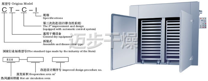 CT-C型系列热风循环烘箱配用低噪音耐高温轴流风机和自动控温系统,整个循环系统全封闭,使烘箱的热效率从传统的烘房3-7%提高到目前的35-45%,最高热效率可达50%。CT-C型热风循环烘箱的设计成功,使我国的热风循环烘箱达到了赶上了国外水平。为我国节约了大量能源,提高了企业的经济效益。1990年由国家医药管理局发布了行业标准,统一型号为RXH。
